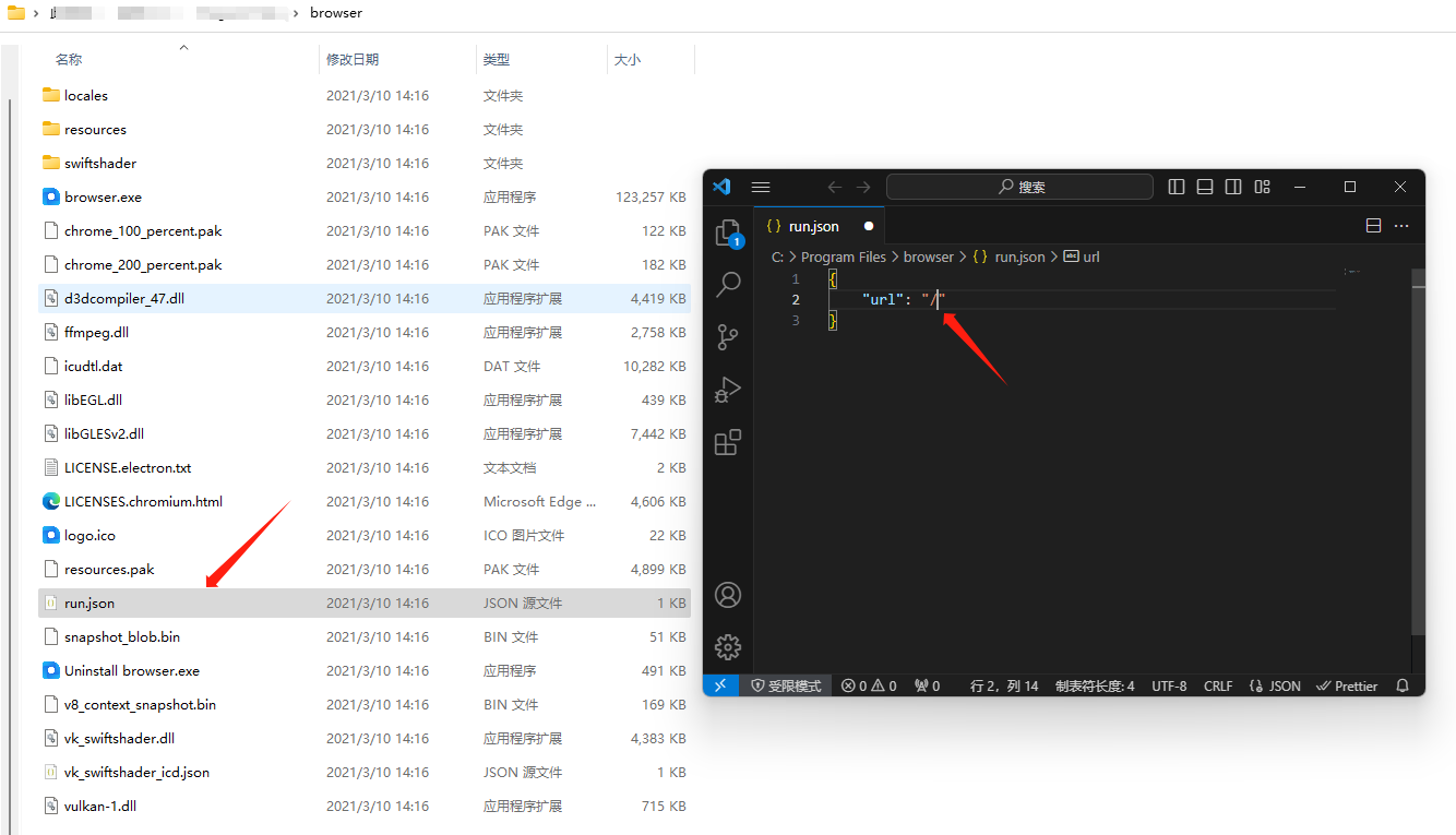 右侧为系统杂项数据展示。右侧数据展示区域包括新手向导、公告信息、负载监测、客服支持和运行环境。这些功能可以帮助您更好地了解软件的使用和维护情况。其中二维码部分为‘ 桌面版框架程序‘下载地址,桌面程序为本地谷歌内核框架,点击下载之后按提示安装到本地,完成之后找到 ’ browser ‘ 桌面图标,右键打开文件所在位置,编辑 “ run.json ” 中 “ url ”: 链接使用地址即可(如图上图所示)。
