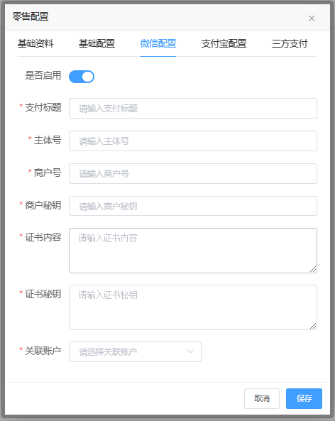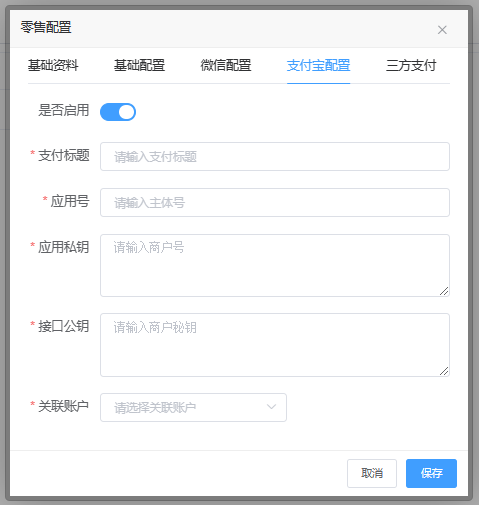 - 积分比例,可以设置零售商品价格兑换的积分比例,这里填写的是1:填写的数字作为积分。