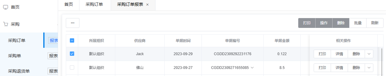 - 采购:采购单