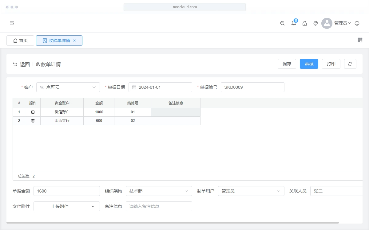支持單據多樣式的直接打印、預覽報表,輸出PDF、可視化模板設計。
