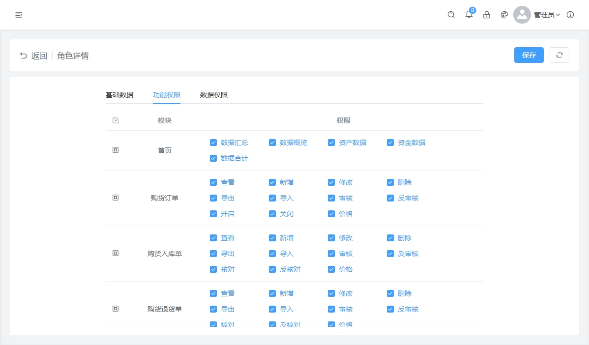支持按不同用戶角色配置功能模塊與數據權限,安全管控業務數據。